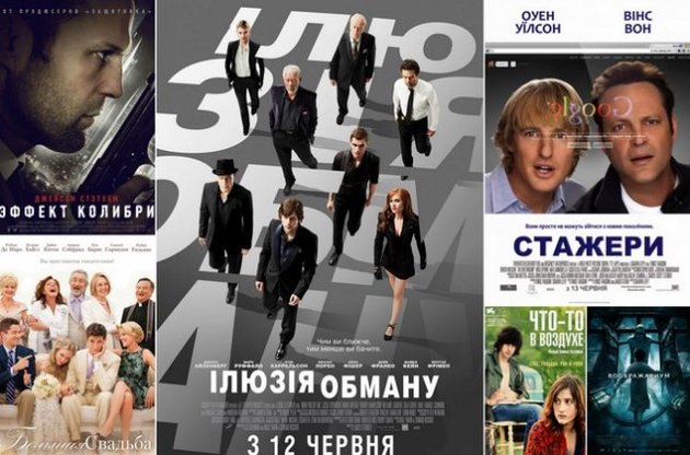 На екрани з 12 червня виходять шість 3. Серед них: кримінальний трилер про фокуси і зухвалі пограбування "Ілюзія обману", дві комедії - романтична "Велике весілля" з цілою купою голлівудських визнаних і молодих зірок та "Стажери" з Вінсом Воном та Оуеном Вілсоном у головних ролях.