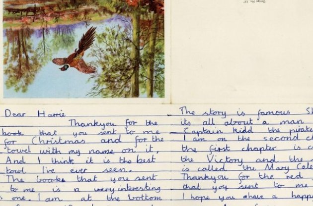 Записка зі словами подяки була написана Ленноном у 1951 році. Він дякував своїй тітці Харієт за подарунки, які вона надіслала йому до Різдва. Як зазначає видання, Леннон писав листи своїм родичам і пізніше, але цей лист, з кількома граматичними помилками, є найпершим з них.