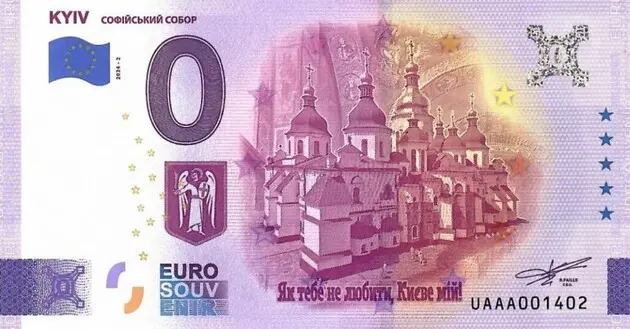 Сувенірну банкноту з нульовим номіналом із зображенням на основній частині Софійського собору готує до друку Національний заповідник "Софія Київська". Як повідомляє Village, сувенірна банкнота матиме зовні вигляд і розмір звичайних євро та буде виготовлена в основному за тією ж технологією, що й оригінальні гроші Європейського Союзу. Зокрема, автори сувенірної банкноти мають намір під час її виготовлення застосувати відповідні водяні знаки, мікродрук, голограми та інші елементи, характерні для звичайних банкнот.