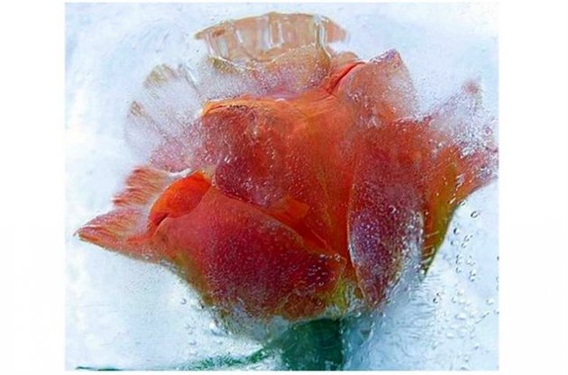 Для нарощування прозорого льоду дизайнери використовували спеціальну технологію: макети квітів встановлюються у кріоблоки, після чого протягом семи днів поетапно і повільно їх заливають дистильованою водою. Останній штрих експонату - за скульптором, який надає форму льодовій картині.