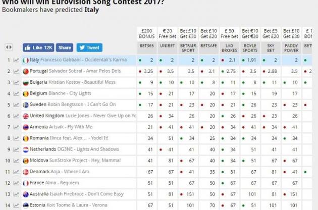 Україна, яку представляє рок-група О. Torvald, на даний момент займає 27 місце в загальному рейтингу.