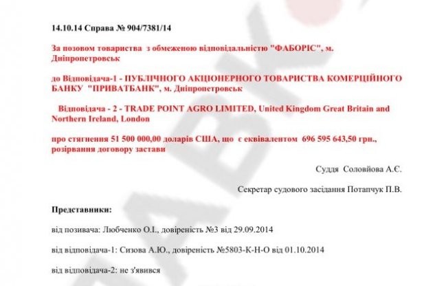 Із "Приватом" перетиналися інтереси й недобросовісних британських постачальників. Наприклад, у реєстрі судових рішень можна знайти інформацію про те, що фірма Trade Point Agro Limited кілька років уклала договір з "Запорізьким масложиркомбинатом". Останній також в ЗМІ відносять до фінансово-промислової групи дніпропетровського губернатора. За документами, українці постачали європейцям рослинне масло, а від них отримували пальмова. Грошові суперечки партнери вирішували взаємозаліками.