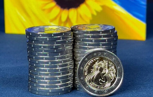 Банк Естонії викарбував і запустив в обіг через свої банки та торгові точки 2 мільйони монет номіналом 2 євро, дизайн яких присвячений Україні та свободі нашої країни. На монеті є слова "Слава Україні", зображено дівчину, птицю та колос пшениці.