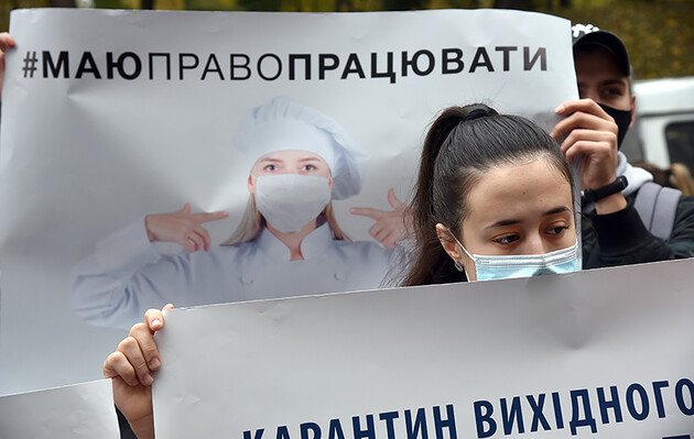 Під час дії карантину «вихідного дня» кафе, ресторани, бари та інші заклади громадського харчування не можуть приймати відвідувачів. Дозволено працювати тільки «на винос». Крім того, в зазначений період заборонено роботу ТРЦ та інших розважальних центрів. Заборонено роботу спортзалів і фітнес-центрів.