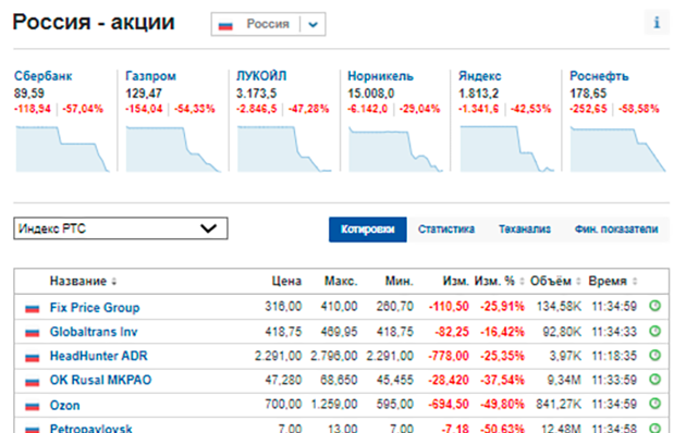 Падіння індексу Московської біржі не припиняється з ранку і ось-ось досягне психологічної відмітки у 50%. Суттєво знецінюється і російський рубль.
