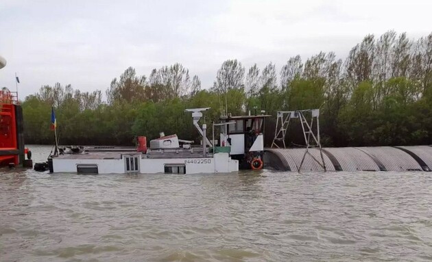 За даними видання, румунська баржа наразі наполовину затоплена та може затонути повністю.