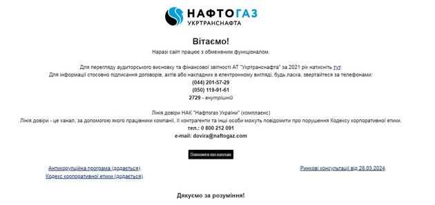 Останнє і єдине оновлення – АТ «Укртранснафта» оголошує попередню ринкову консультацію з виробниками і постачальниками засобів індивідуального захисту, що датується 28 березнем 2024 року.