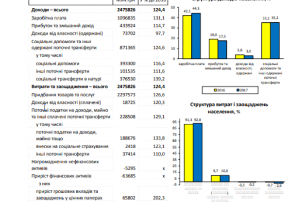 Витрати населення в 2017 році порівняно з попереднім роком збільшилися на 26,8%.