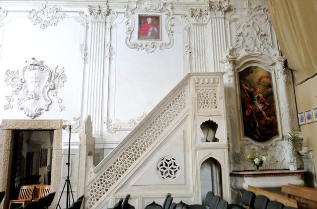 Таке твердження про єдинобожжя в ісламі дуже вже контрастує з атмосферою домініканського костелу, засновники якого монахи-домініканці запекло боролися проти магометанства і приписів Священної книги мусульман Корану. Щоправда, настоятель храму з ордену отців Паулінів, котрі нині опікуються костелом св. Миколая, у приватній бесіді розвіяв наші підозри, зазначивши, що це - вже історія, яку слід шанувати. Тому мінбар і досі тут. І, хоча його використовують тепер як християнський амвон, ніхто не збирається в ньому нічого змінювати, навіть напис.