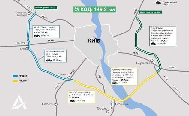 Початок будівництва південного кільця Великої кільцевої дороги заплановане на це літо. Всього протяжність дороги має скласти 150 км. Загальна вартість КОДу, як зазначено в минулорічних заявах, дорівнює 85 млрд грн. Повністю закінчити будівництво Київської обхідної дороги планується за п’ять-шість років.