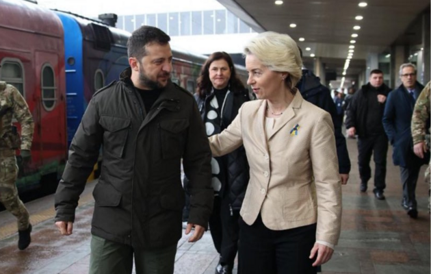 «Приємно повернутися до Києва під час мого шостого візиту під час війни. Я тут, щоб обговорити шлях вступу України до ЄС. Фінансова підтримка Євросоюзу для відновлення України як сучасної, процвітаючої демократії. І як ми далі змушуватимемо Росію платити за її загарбницьку війну», – написала фон дер Ляєн у Twitter.