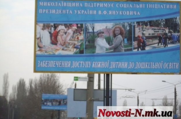 Оновлені плакати повинні свідчити про одностайну підтримку соціальних ініціатив глави держави на Миколаївщині, пише місцеве видання Novosti-N.