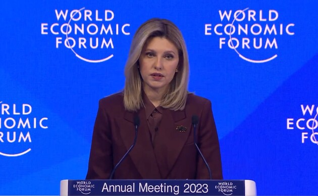 Перша леді України Олена Зеленська під час виступу на Міжнародному економічному форумі у Давосі закликала світових лідерів зробити все можливе для реалізації десяти пунктів Володимира Зеленського для досягнення миру в Україні та запобігання глобальної кризи у світі, яка виникне внаслідок російського вторгнення в Україну.