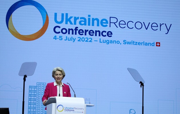 Президентка Єврокомісії зазначила, що в Лугано будуть закладені основні принципи, які стануть «першим блоком принципів, які спрямовуватимуть наш шлях, стануть основою, щоб відновити та реконструювати Україну».