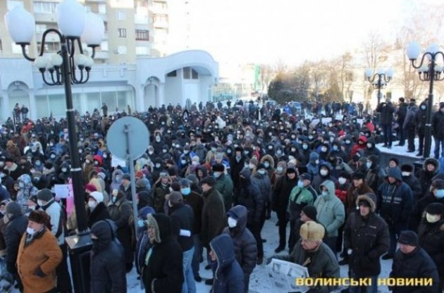 Тисячі протестувальників зібралися біля Волинської облради щоб висловити недовіру керівництву області.