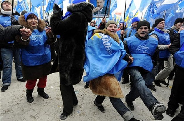 Нагадаємо, 3 грудня у Маріїнському парку столиці, на площі біля Верховної Ради Партія регіонів проводить акцію протесту на підтримку чинної влади. Щодня там збирається кілька сотень людей. На мітинг, який проходить в оточенні правоохоронних органів, підвозять людей з різних регіонів України, переважно зі східних і південних областей.