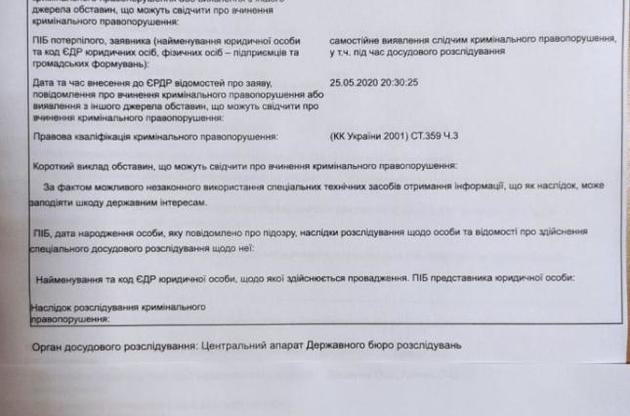 На думку Бюро, незаконне використання технічних засобів для отримання інформації могло заподіяти шкоду державним інтересам.