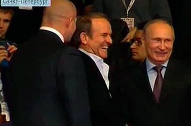Президент Росії Володимир Путін на відкритті світового чемпіонату з самбо в Санкт-Петербурзі зустрівся з лідером громадської організації "Український вибір" Віктором Медведчуком, який прибув на ці змагання на запрошення глави РФ.