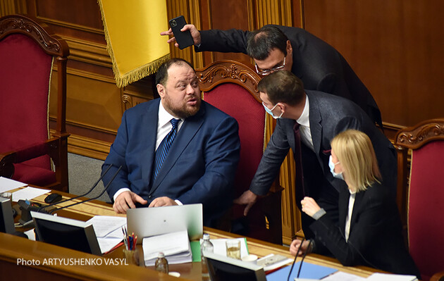 Фракції ОПЗЖ та «Європейська солідарність» ініціювали відсторонення на два дні спікера Верховної Ради Руслана Стефанчука від головування на засіданні. Однак таку ініціативу підтримав лише 31 народний депутат при необхідних 226.