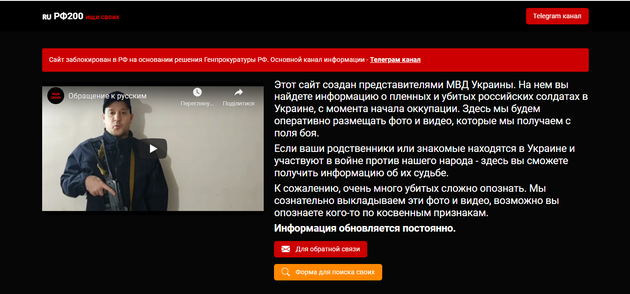 Сайт запустило Міністерство внутрішніх справ України. Там викладають фото та відео загиблих в Україні російських солдатів, фото та відео тих, хто потрапив у полон, а також їхні документи, і там є зворотний зв'язок.