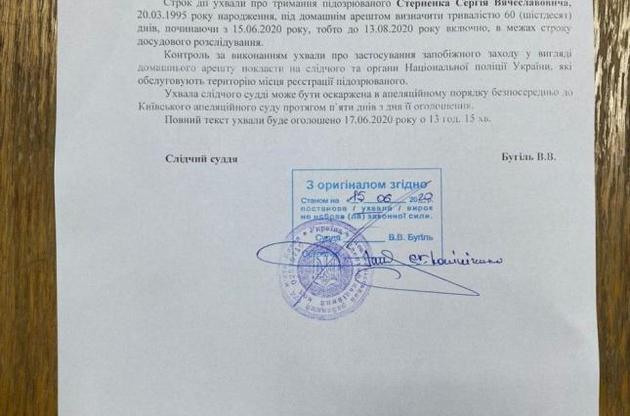Шевченківський районний суд Києва обрав одеського активіста Сергія Стерненко запобіжний захід у вигляді 60 діб цілодобового домашнього арешту, йдеться у його Telegram-каналі.