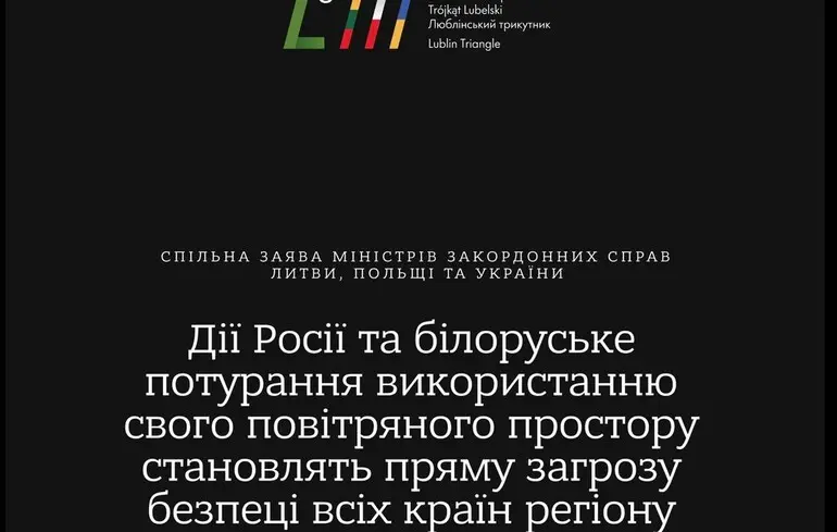 Міністри закордонних справ Литви, Польщі та України, учасники формату Люблінського трикутника, оприлюднили спільну заяву у зв'язку з нещодавнім проникненням російських безпілотників на територію Польщі.