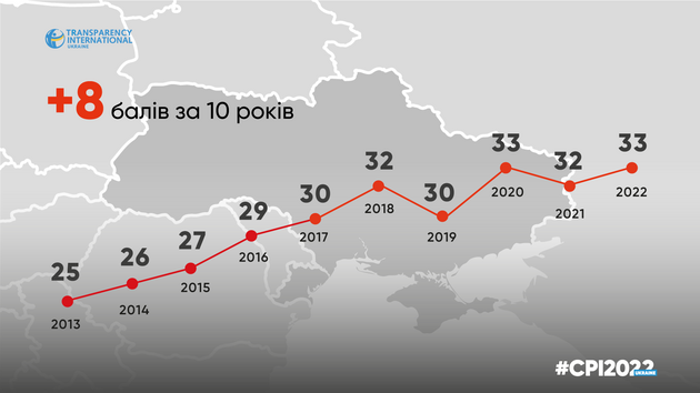 Нагадаємо, Україна цього року піднялася у рейтингу «Індекс сприйняття корупції» від організації Transparency International та отримала свій історичний максимум – 33 бали із 100. Тим не менше вона продовжує залишатися серед сотні найбільш корумпованих країн, посідаючи 116 місце.