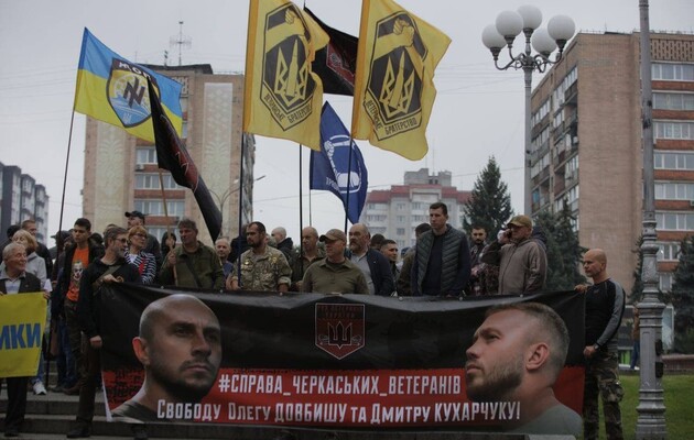 Соратники Кухарчука також провели мітинг під Черкаською ОДА. В "Нацкорпусі" вважають справи проти лідерів їх руху сфабрикованими.
