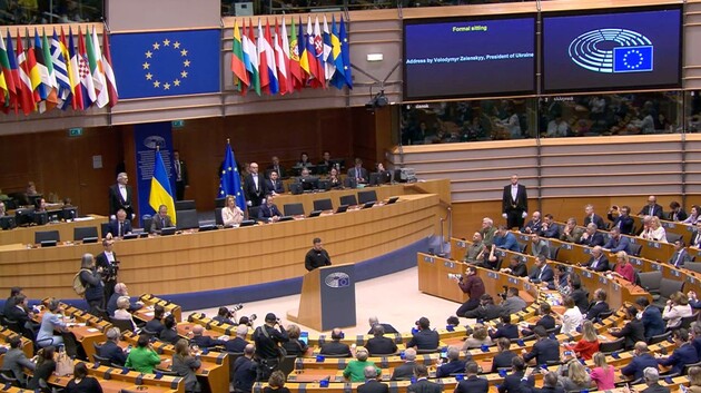 Після виступу Зеленського депутати Європарламенту відповіли йому оплесками стоячи та прозвучав гімн України.