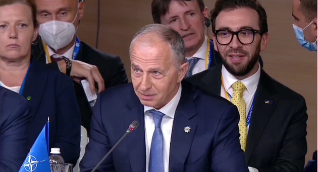 Представник НАТО на саміті нагадав, що Альянс послідовно підтримує державний суверенітет і територіальну цілісність України, що підтвердив червневий саміт НАТО.