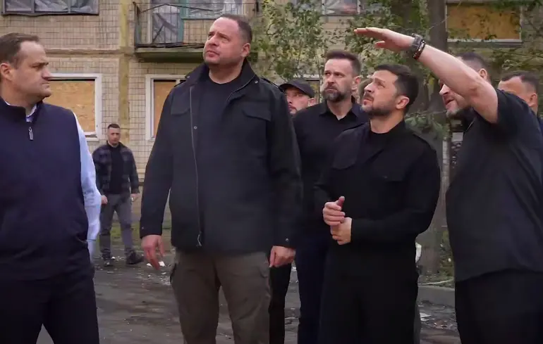 Президент вшанував пам'ять загиблих на місці російського удару та оглянув територію на наслідки російської атаки.