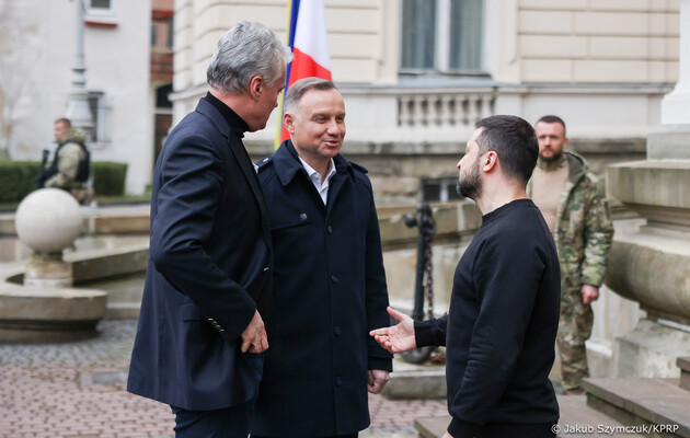 У свою чергу Зеленський зазначив, що Україна з перших днів повномасштабного вторгнення відчуває підтримку братських народів Польщі та Литви.
