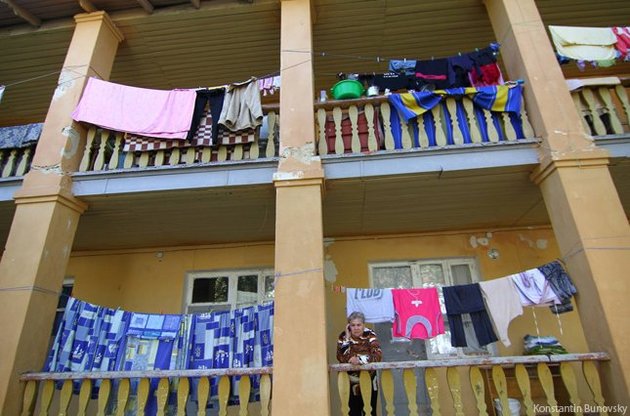 "Рік тому ходили страшні історії про гетто для переселенців. Хтось навіть показував фото схожих на бараки споруд на кордоні з Луганською і Донецькою областями. Усі притомні люди сміялися над цими легендами, переказуючи їх одне одному як анекдот, - каже Леся Литвинова. - Минув рік. І це гетто практично повністю виявилося збудованим. Ті, кому вистачило ресурсів отримати собі свободу, опинилися поза ним. Ті, кому грошей, зв'язків і сил забракло, - всередині. Воно будувалося не відразу. Виростало поступово, як живий організм. Акуратними стіночками шикувалися примітки у звичних оголошеннях про роботу і житло: "Крім Донецька і Луганська". Барак за бараком зводили ті, хто казав "самі винні", "вони покликали в наш дім війну", "а нічого було по референдумах бігати". Акуратні таблички "чужий" забезпечили довідки й штампи, без яких ані пенсії, ані дитячих, ані виплат по інвалідності не отримати. Ті, хто зберігає в собі залишки людяності чи підсвідоме відчуття провини, передають за колючий дріт харчі й медикаменти, ковдри й іграшки для дітей. Інші ж просто обходять десятою дорогою. Обходити - простіше. Простіше не помічати. І важко докоряти за це тим, хто з чистої випадковості залишився по той бік стіни відчуження".