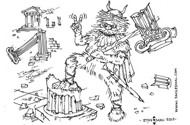 Варвар же бачить у місті джерело багатства, яке можна здобути не працею, а зброєю. Джерело мародерства, простіше кажучи. Для варвара набіг - сенс життя, руйнування побудованого - естетичний критерій.