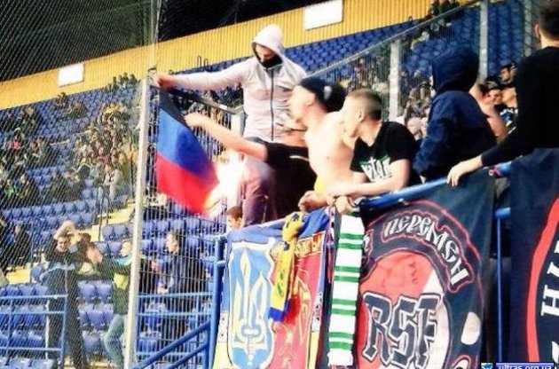 Фанати на трибуні спалили прапор невизнаної республіки. Фото було додано уболівальниками на сайті українських ультрас Ultras.org.ua.