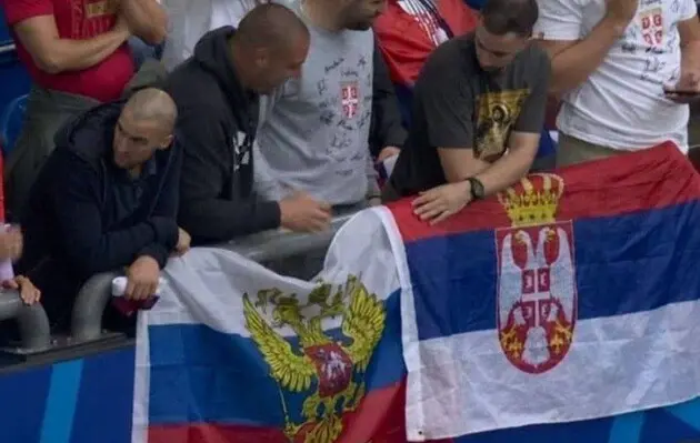 Російські прапори було вивішено на трибунах стадіону матчу 1-го туру групового етапу Євро-2024 між збірними Сербії та Англії.