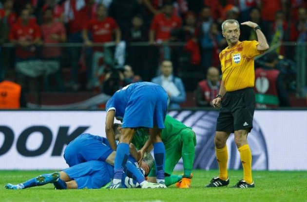 Матч Дніпро - Севілья українська команда догравала вдесятьох: після того, як бразилець Матеус втратив свідомість, а його винесли з поля на ношах, у Мирона Маркевича вже не було замін. За кілька хвилин до неприємного епізоду бразилець у верховій дуелі зіткнувся головою з французом і екс-динамівцем Бенуа Тремулынасом.