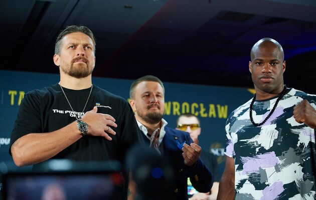 Український чемпіон світу за версіями WBA, WBO, IBO та IBF у надважкій вазі Олександр Усик (20-0, 13 КО) та британець Даніель Дюбуа (19-1, 18 КО) провели першу битву поглядів перед боєм.