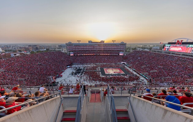 Арена у Небрасці зазвичай приймає футбольні матчі, на яких можуть розміститися 85 тисяч глядачів. Проте волейбольний майданчик значно менший за розміром, тому організатори змогли розмістити додатково 7 тисяч уболівальників.