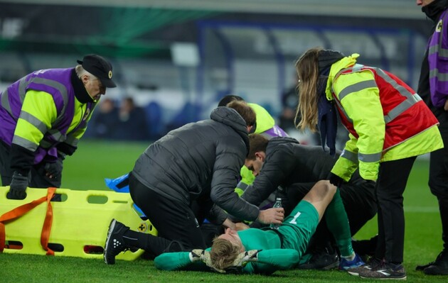 Воротаря забрали з поля на ношах і відвезли зі стадіону на автомобілі швидкої допомоги.