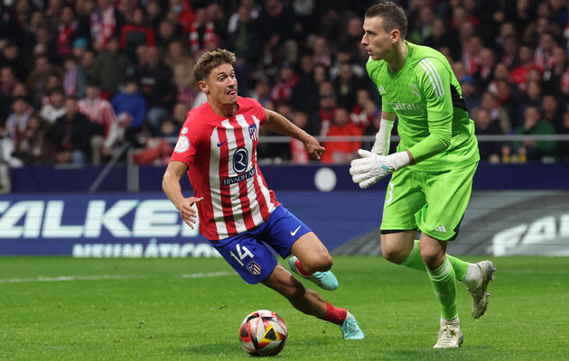 Український воротар Андрій Лунін провів матч за мадридський "Реал" проти "Атлетіко" в 1/8 фіналу Кубка Іспанії.