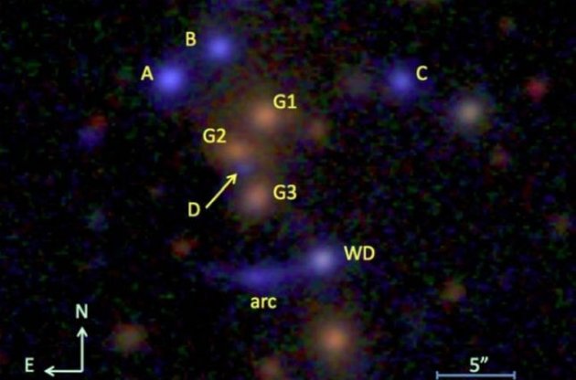 Астрономи з Гарвард-Смітсонівського центру фізики провели дослідження відставань між окремими променями квазара SDSSJ2222+2745, в ході якого виявилося, що шість гравітаційно лінзованих зображень, з яких складається система, представляють собою один і той же об'єкт, видимий одночасно в шести точках своєї еволюції в часі. Причому, дві з цих точок видно з відставанням у часі майже в два роки. Повідомлення про відкриття було розміщено в прес-релізі центру астрофізики.