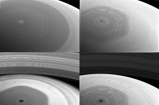 Кожне фото знято з накладенням спектрального фільтра, чутливого до різних довжин світлових хвиль. Завдяки цьому можна розглянути хмари і серпанок на різних висотах. Cassini зробила знімки за два дні до того, як вперше пройшла поруч із зовнішнім краєм кілець в ході своєї останньої місії.
