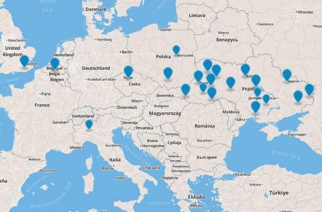 Згідно з даними мапи, в Лондоні, Брюсселі, Парижі, Чехії, Італії та Канаді також планується провести євромайдани. Так, в Лондоні для участі в акції вже зареєструвалися понад 500 осіб, в Парижі - близько 150.