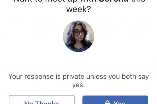 Мобільний додаток Facebook надсилає користувачеві повідомлення про те, що він міг би зустрітися з кимось зі своїх друзів. При натисканні на посилання відкривається фотографія одного з друзів з питанням "чи хочете ви призначити зустріч на цьому тижні?". Якщо обидва користувача дадуть ствердну відповідь, додаток дозволить влаштувати зустріч, якщо ж один з них відмовиться, другий про це не дізнається.