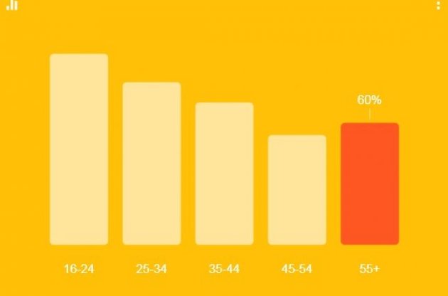 Користування інтернетом щодня характерно для всіх вікових категорій. Наприклад, 60% українців у віці 55 років і старше користуються інтернетом щодня. Про це повідомляє TNS Infratest.