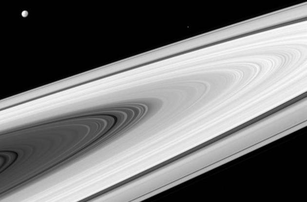 Команда місії Cassini представила новий знімок супутників і кілець Сатурна. На фото, опублікованому на сайті NASA, можна побачити Діону і Епіметей, які "зависли" над кільцями планети.
