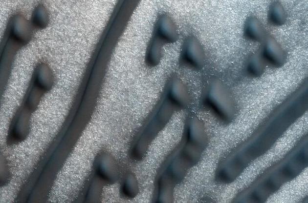 NASA опублікувало знімок темних дюн на Марсі, який був зроблений за допомогою інструменту HiRISE, встановленого на апараті Mars Reconnaissance Orbiter (MRO) 6 лютого 2016 року в 15.16 за місцевим марсіанським часом.