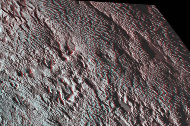 Дослідники місії New Horizons представили знімок одного з найцікавіших регіонів на поверхні Плутона, який відрізняється "порізаною" поверхнею. Як повідомляється на сайті агентства, область, що отримала назву Tartarus Dorsa, знаходиться на сході від регіону Томбо. Представлений знімок зроблений у форматі 3D.