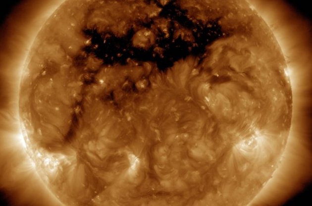 Обсерваторія сонячної динаміки NASA зробила новий вражаючий знімок Сонця. На цей раз астрономам вдалося сфотографувати корональну діру на Сонці – область, в якій магнітної поле зірки відкрито в міжпланетний простір. Знімок був опублікований на офіційному сайті NASA.